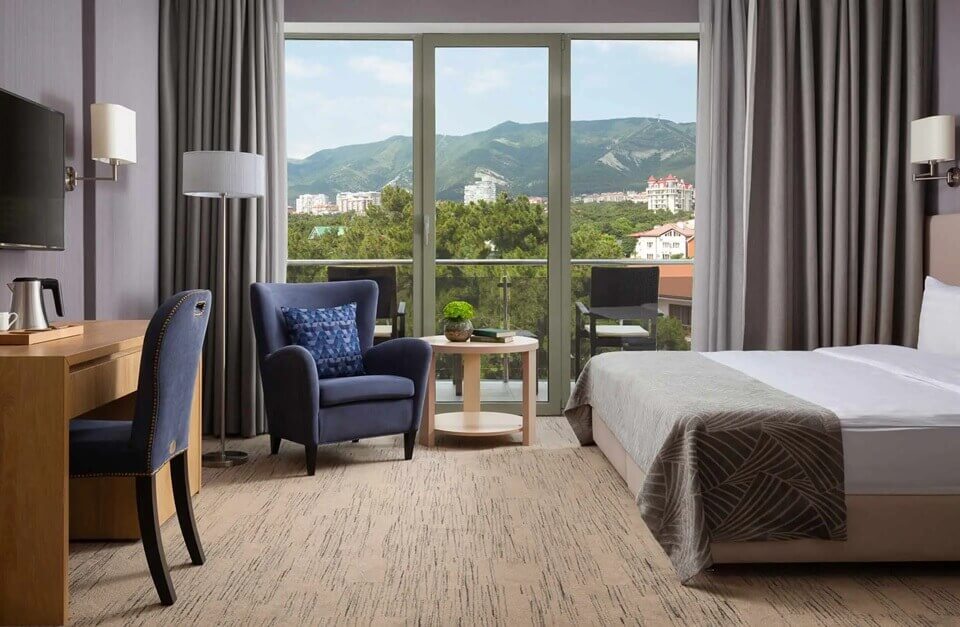 Номерной фонд отеля Приморье Геленджик предлагает отдыхающим комфортные современные номера разных категорий и разного уровня звездности 3, 4 и 5 звезд. Номера оснащены всем необходимым: в каждом есть индивидуальный санузел, кондиционер, плазменный телевизор, фен. Из окон комнат открываются красивые виды на Геленджикскую бухту или горы.