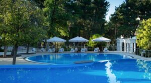На территории отеля расположены три бассейна: один крытый спортивный бассейн на 1-этаже Wellness-центра, и два открытых бассейна: один с подогревом, работает круглогодично, второй бассейн работает сезонно с мая по октябрь.