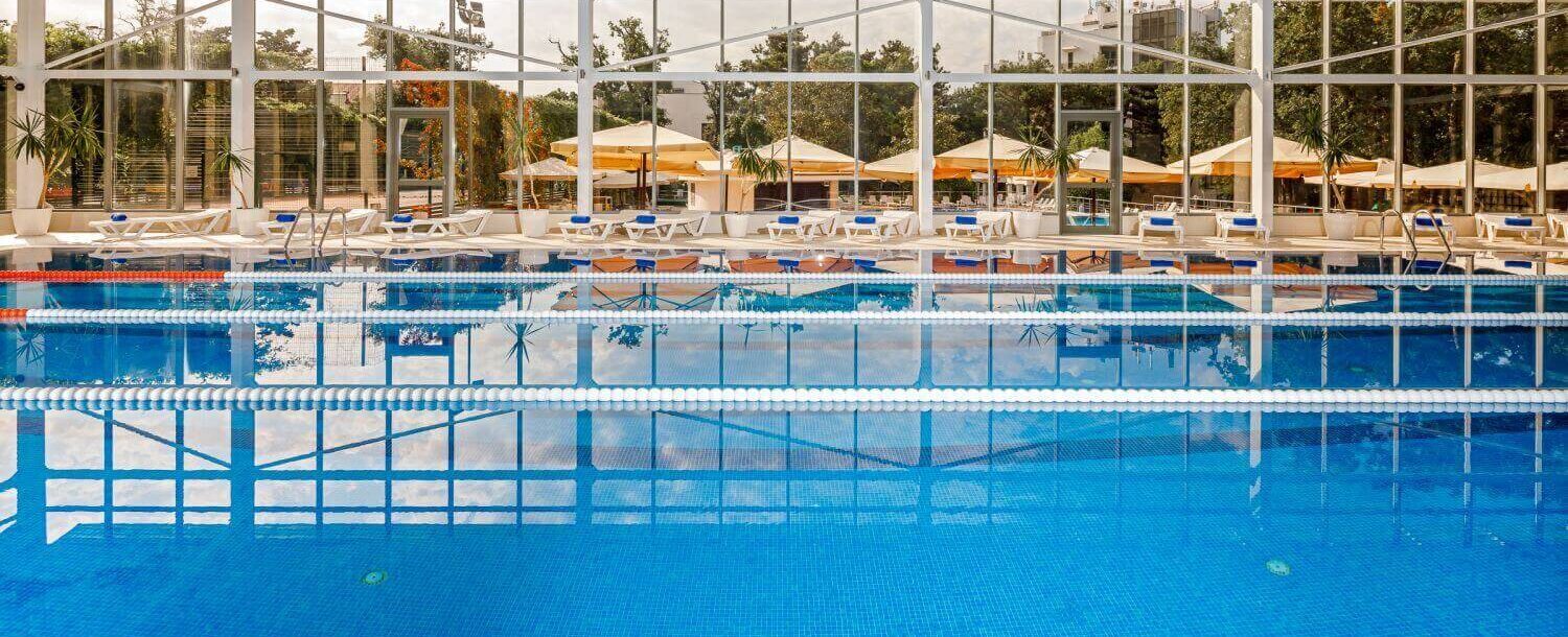 На территории отеля расположены три бассейна: один крытый спортивный бассейн на 1-этаже Wellness-центра, и два открытых бассейна: один с подогревом, работает круглогодично, второй бассейн работает сезонно с мая по октябрь.